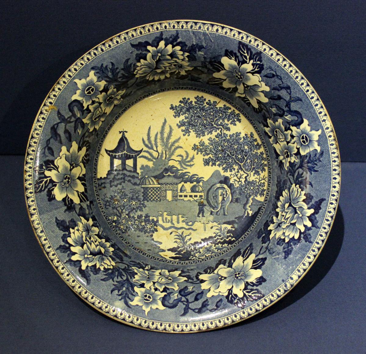 Print is known as the "elephant" pattern, usually attributed to John Rogers & Son, Staffordshire, England.