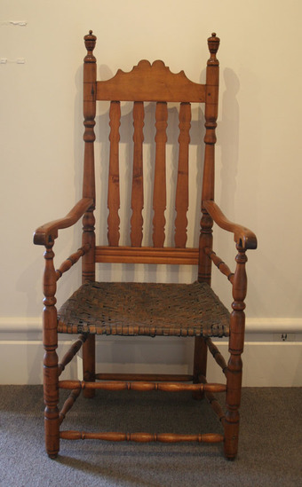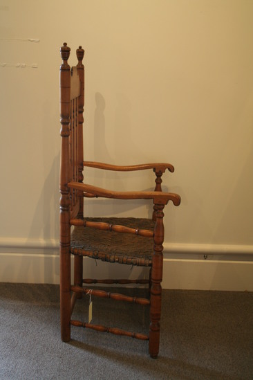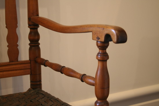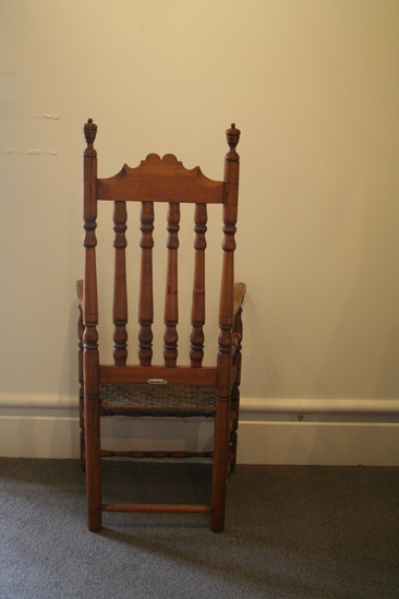 From Deacon Coe's house on Beach Street. Always in Coe family until purchased by Wm. Mitchell Van Winkle. Museum purchased chair at 1939 Van Winkle auction.