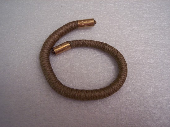 Hair bracelet with gold ends. Bracelet designed so winds around wrist with no need for clasp