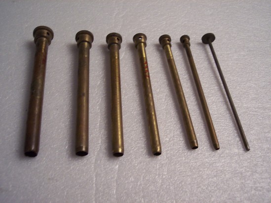 hollow brass tubes for cutting corks for bottles with stepped end, with hole for brass turning rod. 6 sizes and turning rode rit into each other