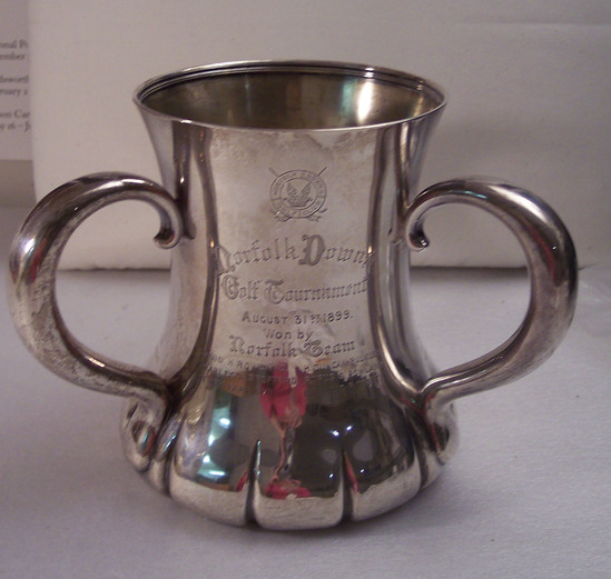 Each year a team of six members of the Litchfield Golf Club drove to Norfolk to meet a similar team of the Norfolk Downs to play for the Eldrich cup. The team winning five times kept the cup. This was the first cup and won by Litchfield. What happened to the others, the donor does not know. He played on the team in 1928. Each winning member received a small cup as well.