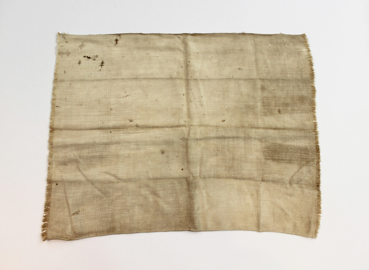 Donated as part of a collection of household textiles and costume items related to the Brooks family. Spun and woven by Mrs. Lydia E. George (Mrs. Moses George) in Weare, N.