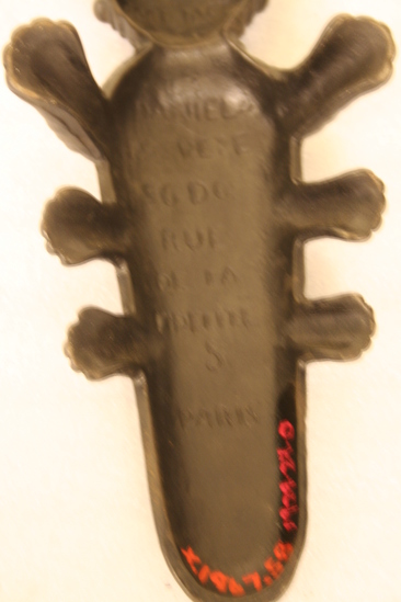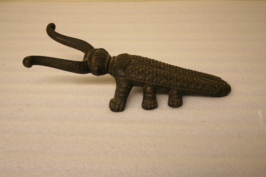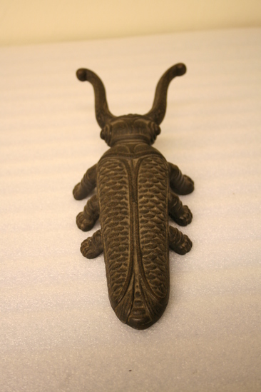Beetle-shape cast iron boojack with three legs on each side and the antennae forming the boot hold.