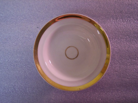 Small, round white plate with one thin, small gilt circle at its center.