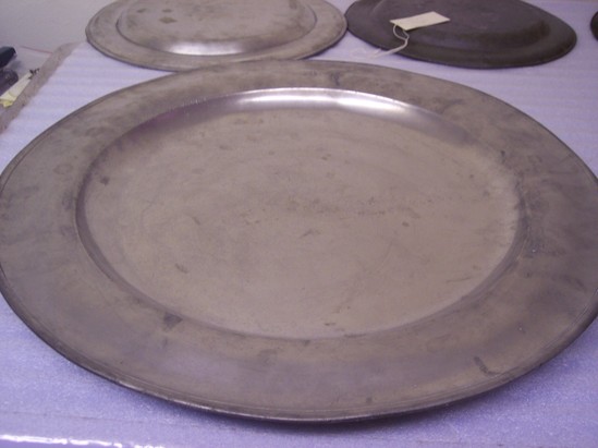 Pewter communion platter used by Northfield Congregational Church from 1795 until about 1867 when a new memorial communion service was presented to the church by a relative of the Rev. Elijah W. Tucker, who died Aug. 6, 1866 ae. 56. The platter was kept in the family of Deacon John Catlin until 1935 when James P. Catlin of New Haven restored them to the ownership of the church