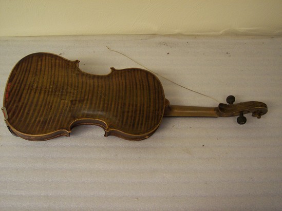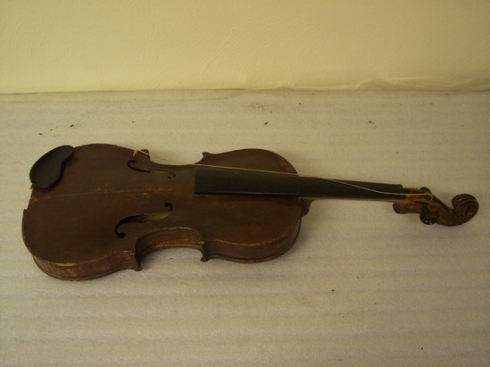 violin 23 1/2" long x 8" wide at base bow 28" long