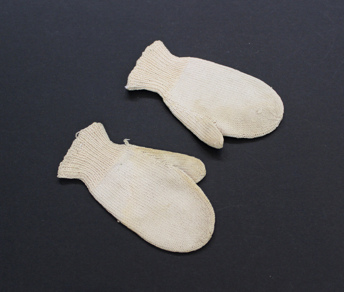 Pair of white silk knit child's mittens; ribbing at wrist