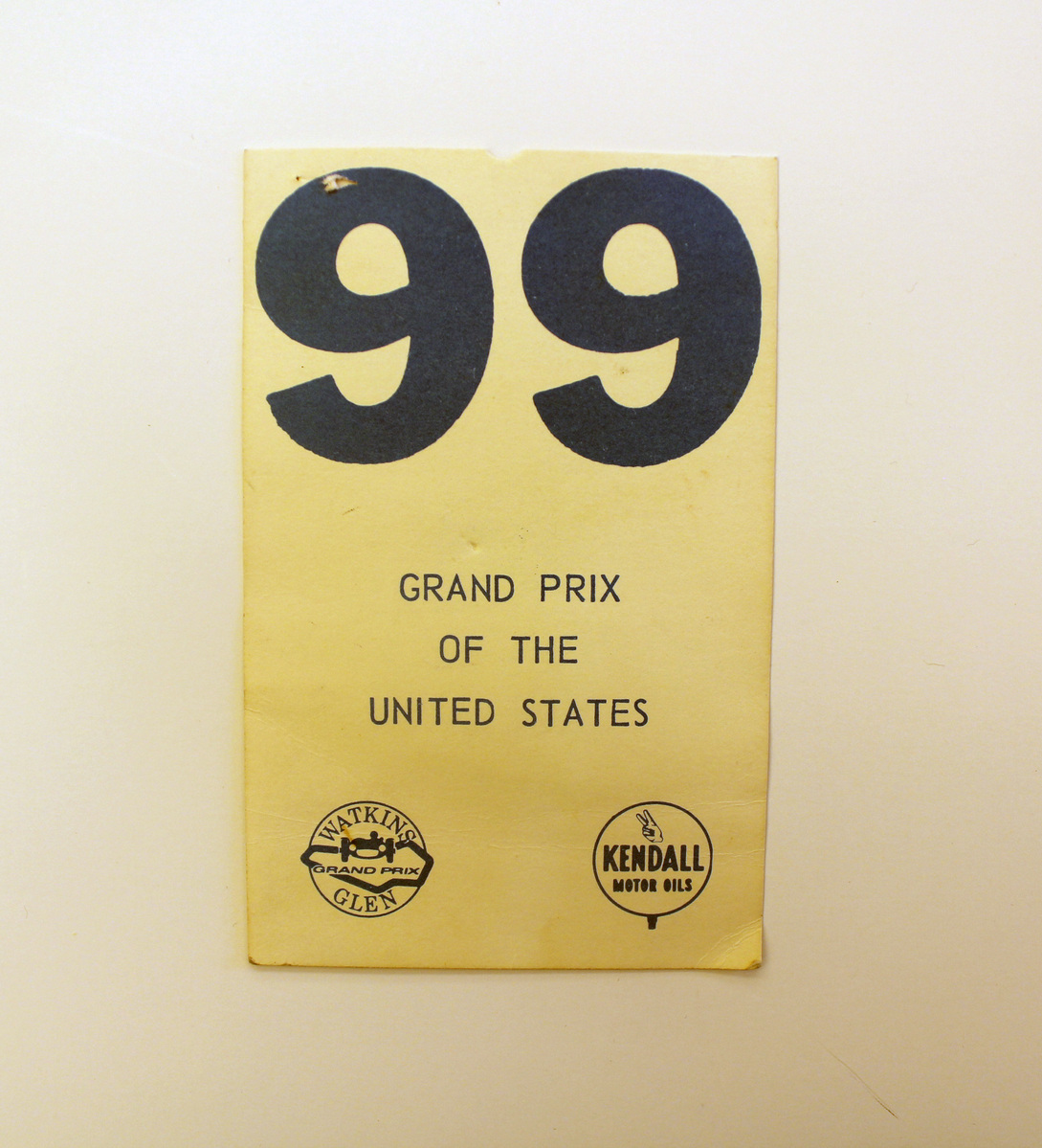 Likely for the 1961 Formula 1 United States Grand Prix (automobile racing), at Watkins Glen, New York. Kendall Motor Oils was the official motor oil sponsor of the Watkins Glen International race track.