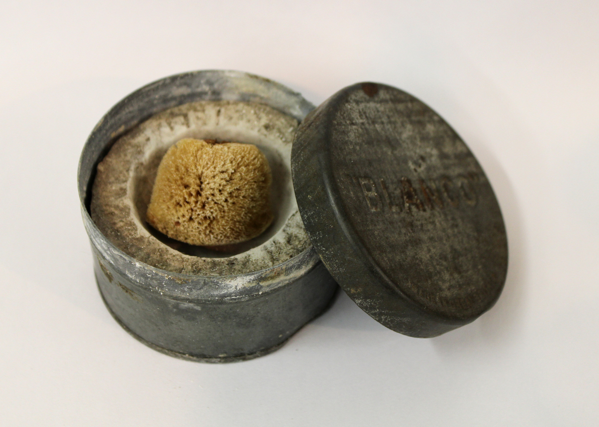 "Blanco" was a cleaner compressed into a block and sold in a tin. With the addition of water, it could be used to clean white clothing and accessories (cricket and tennis shoes, gloves, military uniforms, etc.).