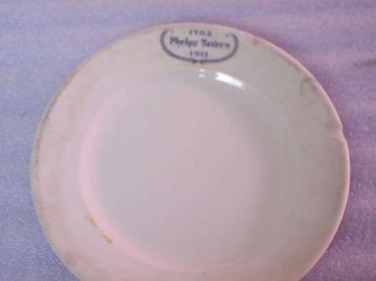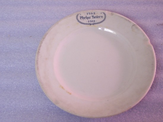 White plate commemorating Phelps Tavern. Green writing states, "1782/Phelps Tavern/1911" surrounded by a green garland.