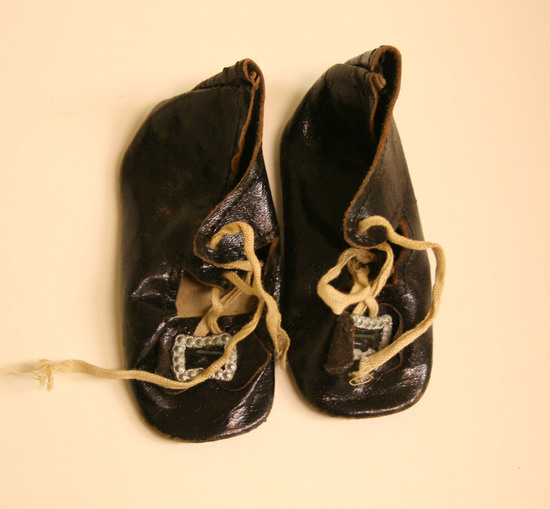 Black glace kid doll ankle shoes - laced in front and paste buckle