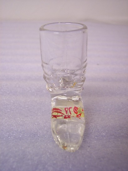 Clear pressed glass man's boot