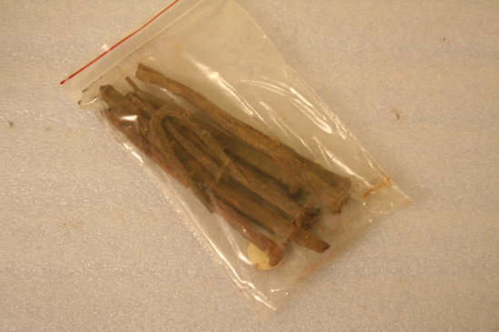 Two bags of hand wrought iron nails from the Ephraim Kirby House on South St. Litchfield
