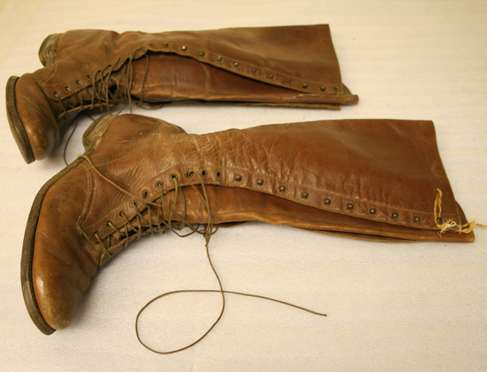 Donated with military uniform items belonging to Edward H. Raymond Jr. (World War I) and Edward A. Raymond (World War II), both of Litchfield, Connecticut. Donor's correspondence lists a pair of officer's lace boots for field artillery, worn in Tunisia by Edward A. Raymond while serving with French XIX Corps.