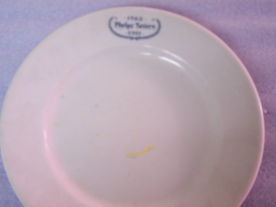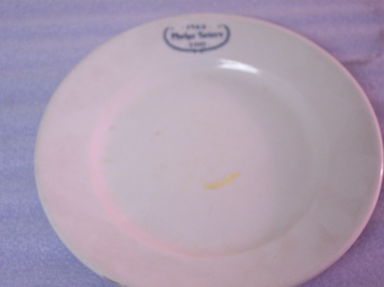Large, white plate commemorating Phelps Tavern. Green writing states, "1782/Phelps Tavern/1911" surrounded by a green garland.