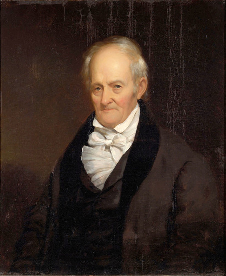 Oil on canvas portrait of Judge Judson Canfield, (1759-1840), 1/2 length of an old man facing left, wearing a black coat and vest, ruffled white shirt and white tie. Receding thin white hair, sunken mouth, hazel eyes. See 1955-02-2 for companion portrait of his wife, Mabel Ruggles Canfield. Painted in 1839 at the age of 80.