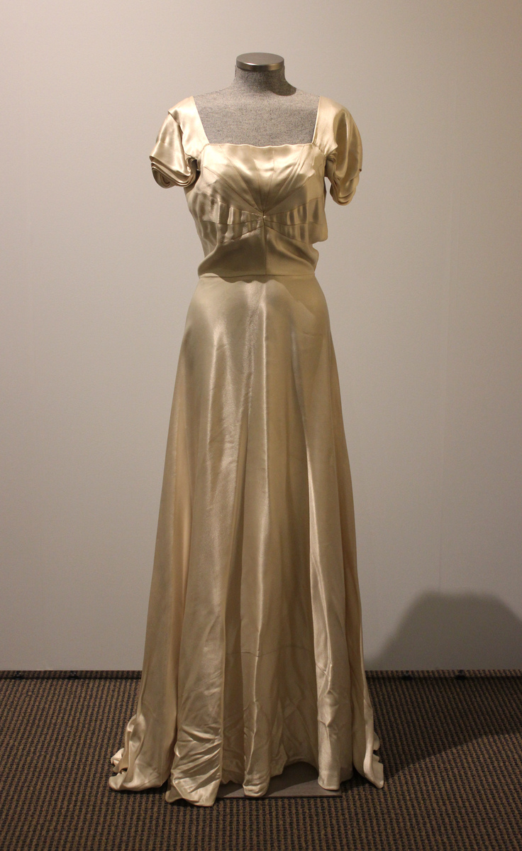 Worn by Tracy Haight Griswold (1919-2020). LHS archives (2020-23-0) contains a photograph of Tracy in the dress.