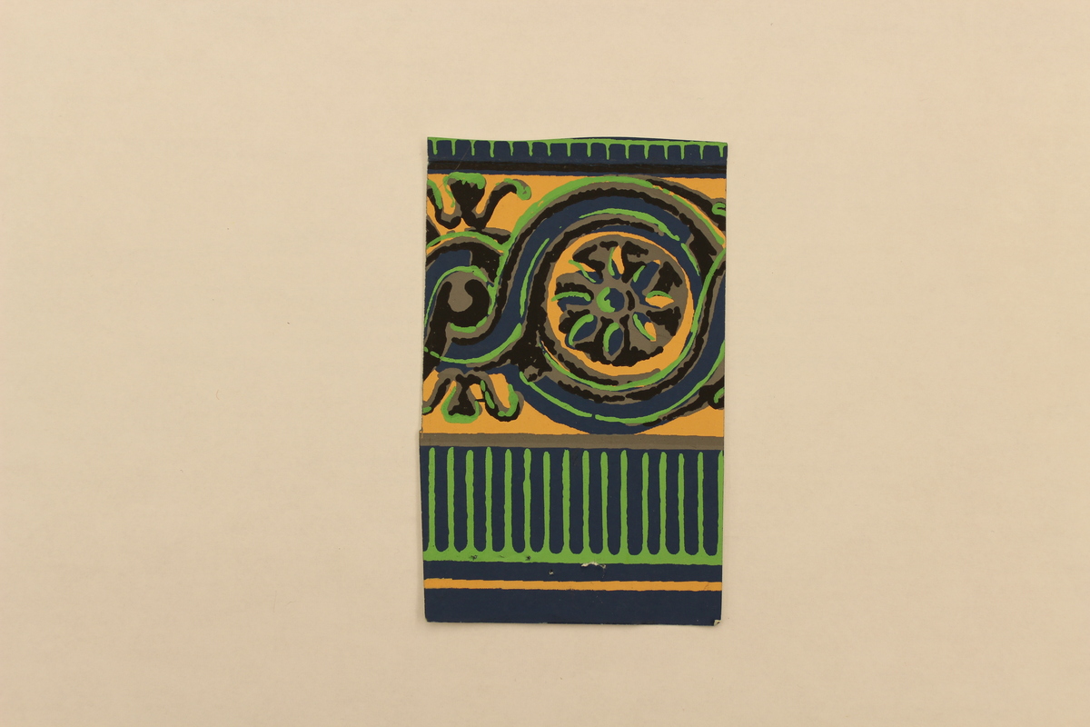 Sample from a decoration job for Mr. Hart's office in the first National Bank. This item came in with a larger collection of materials related to interior design projects of Nan F. Heminway.