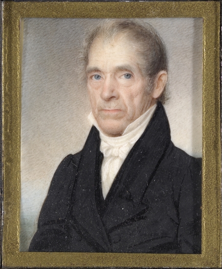 Born in Milton, a village in the town of Litchfield, Anson Dickinson began advertising himself as a miniature painter in 1802. He traveled to New York in 1804, where he was painted by Edward Greene Malbone, the leading American miniaturist of his day. Dickinson painted over 1,500 miniatures over the course of fifty years, traveling as far as Canada and South Carolina to paint. He kept a studio in New York for a period, and returned frequently to Litchfield where he painted prominent residents and students of the Female Academy and Law School.
