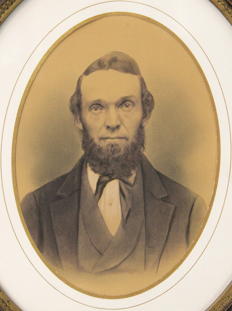 Object obtained from the estate of Fernie Hunt, the grandson of Elizabeth Wheeler and John F. Williamson. Companion portrait of Williamson's wife (done as photographic portrait) in LHS archival collection, 2018-50-0.