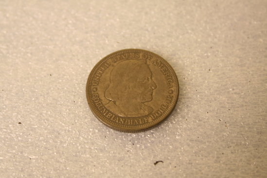 Commemorative half dollar issued in conjunction with the 1893 World's Columbian Exposition, marking the 400th anniversary of Christopher Columbus's first voyage to the Americas. The obverse bears a right-facing portrait of Columbus; the reverse bears an image of the Santa Maria above two hemispheres.