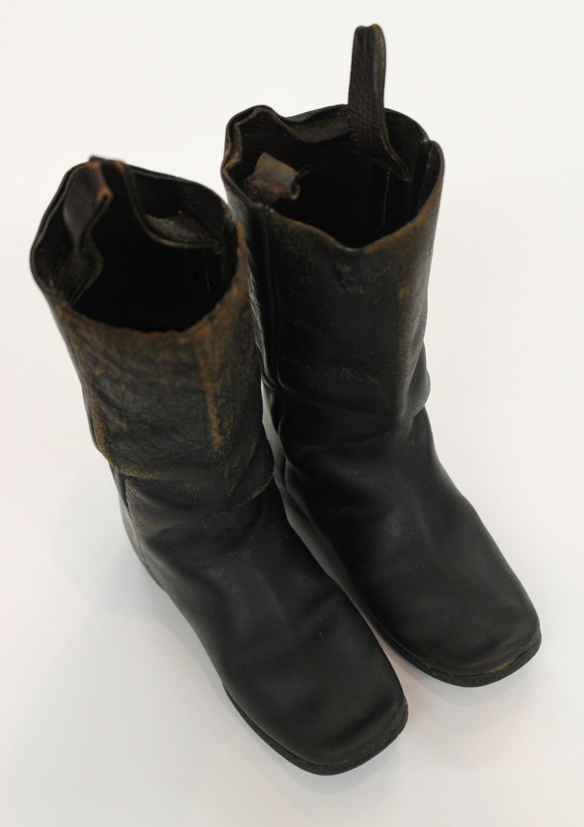 These boots were made by Mr. Bundy of Lakeville, CT for John H. Hubbard, Jr. who wore them the week before his death in April 1849. He was four years old. Since then they have been worn by John T. Hubbard, Philip P. Hubbard, Anna E. Hubbard and Frank W. Hubbard