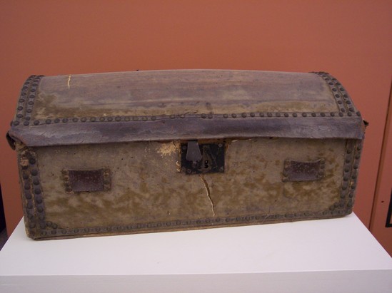 This trunk has been attributed to David Matthews, colonial mayor of New York, who stayed with Major Moses Seymour at his home on South Street while imprisoned in Litchfield in 1776. Matthews escaped one day while taking a walk. He credited local Loyalist Joel Stone with aiding in his escape. The trunk has passed through the Seymour family but the provenance is fuzzy.