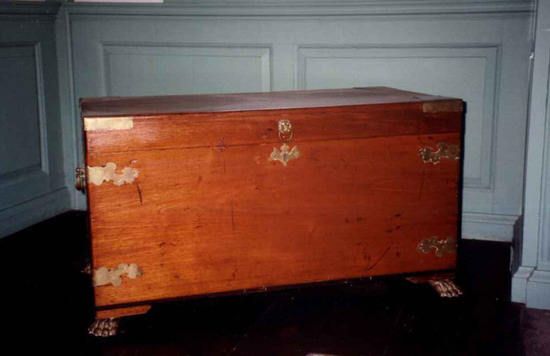 Wedding chest of Lucretia Deming Perkins (Mrs. John W. Quincy) Key to chest is inside of it.