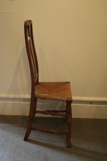 Made from the wood of the Marsh House which was built in 1759 and torn down in 1899 to make way for the Noyes Memorial Building. The design of the chair was copied from #9 in the 1969 Litchfield County Furniture Catalog