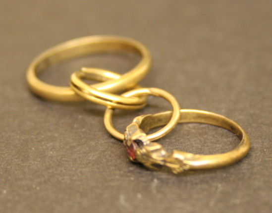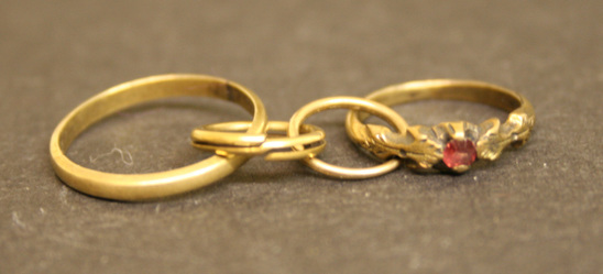 Ring # 1911-04-4 is attached to 1911-04-3 by two gold rings, both rings belonged to Mary Tallmadge Noyes. In the photograph, 1911-04-4 is the ring on the left.