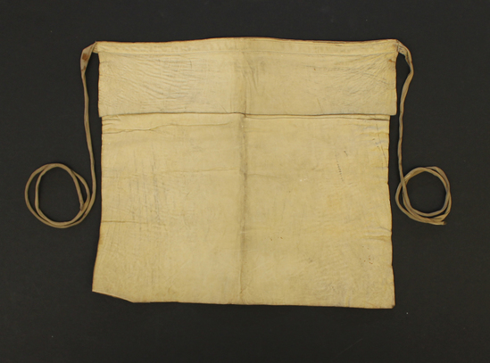 White leather Masonic apron. No decoration. Ties made from white linen.
