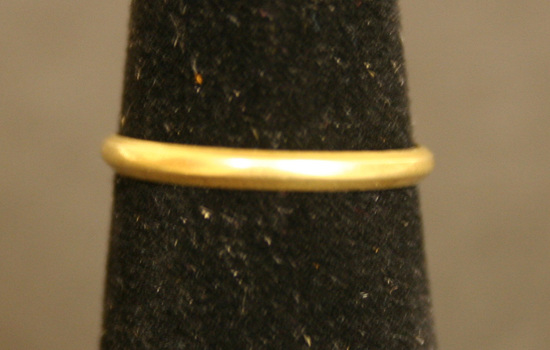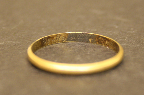 Lady's gold band, plain with bevelled edges, engraved inside "To My Mother, Augst 19th, 1842"