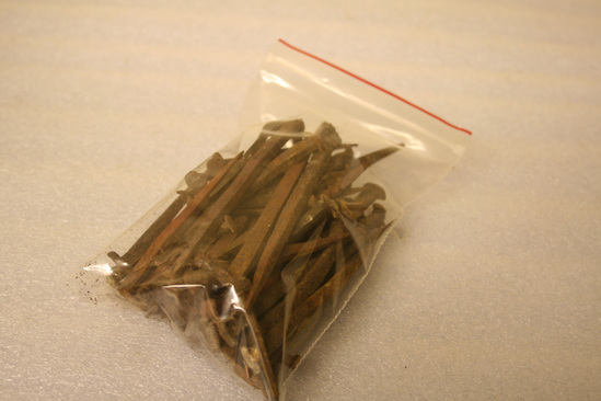 Assorted nails from the first Court House in Litchfield which burned in 1886.