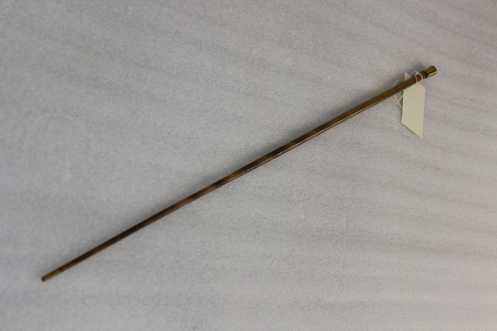 Walking Stick, possibly tortoise shell, brass handle and tip, very fine and thin