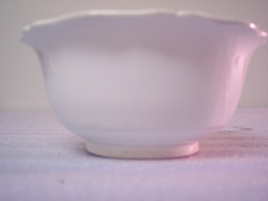 Large bodied slop bowl. Slip molded in shell form and has painted polychrome floral designs