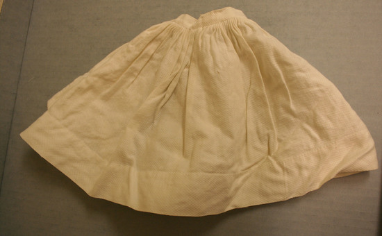 White doll's skirt, long with gathered waist, waffled pique, one hook closure at back