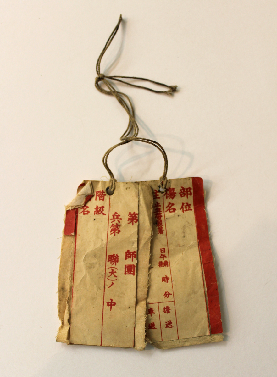 Donated with personal effects of Oswald W. Marrin Jr. Possibly taken as a war souvenir during service in the Pacific Theater, World War II. Marrin (1919-2007) was born in New York City before moving to Litchfield. Graduating from Brown University in 1942, Marrin joined the U.S. Marine Corps Reserve and attended Officer's Class in Quantico, VA. He served as platoon commander and eventually executive officer of K Company, 3rd Battalion, 7th Marines, 1st Marine Division. In his company was Charles R. Hickox, Jr., also of Litchfield. Marrin served in the battles of Guadalcanal, Gloucester, and Peleliu. Discharged as a major in 1946, he returned to Litchfield and ran the Marrin Real Estate Company.