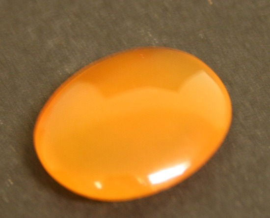 Oval lozenge of pale orange stone, possibly onyx?