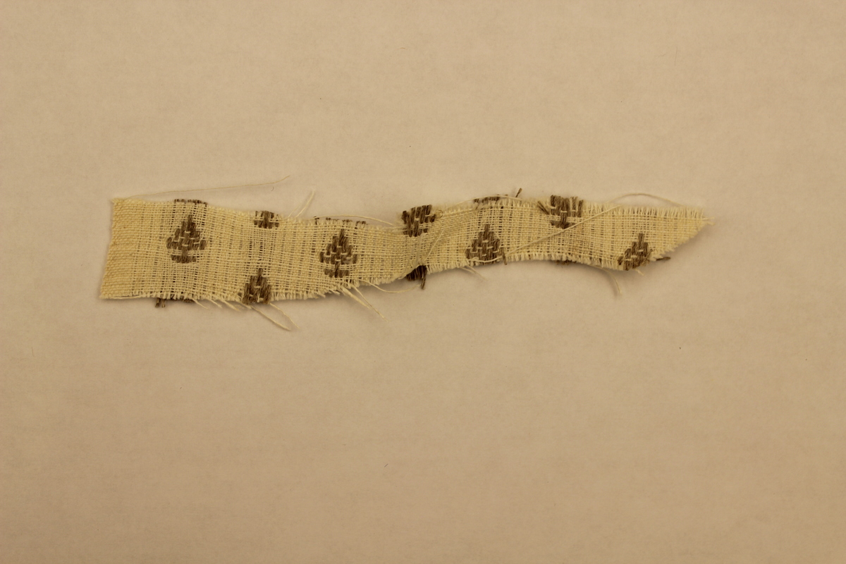 Fabric swatch for the upholstery from a decoration job for the Oliver Wolcott Library reading room. This item came in with a larger collection of materials related to interior design projects of Nan F. Heminway.