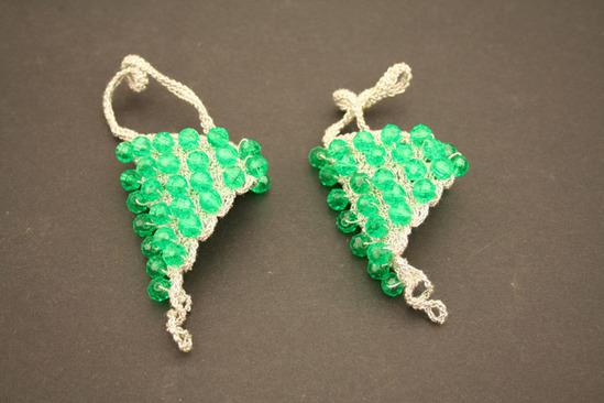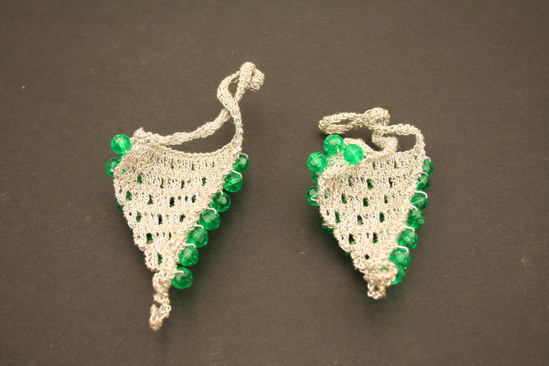 Sandels designed to cover top of wearer's foot so wearer could go bare foot but still have decorated feet; sandels have ankle strap; triangular portion to cover top of foot and toe strap; triangular portion is covered with 28 green plastic beads