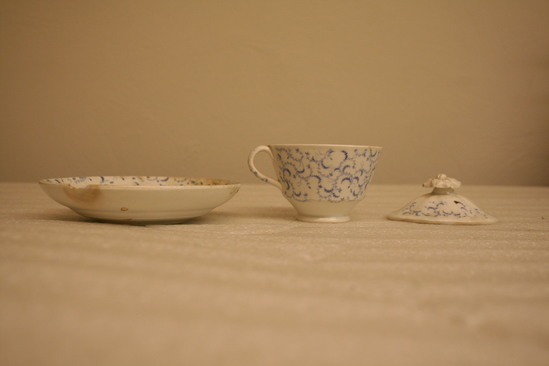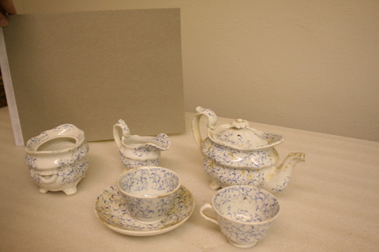 Tea set belonged to donor's mother MRs. Elsworth Howard. It was given to her when she was born on April 1, 1850 in Litchfield. The set was fourteen years old at that time.