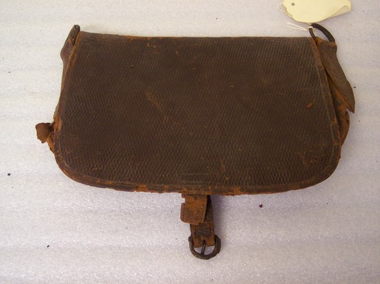 When pouch donated a letter located inside which was titled "Message to the Confederates Norfolk, VA" The letter read "In answer to your terms of surrender. We will accept nothing but immediate surrender and that the southern states brought into this union" Signed "Capt. Mackenzie" In collection of LHS archives (8015 K1322)