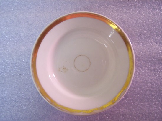 Small, round white plate with one thin, small gilt circle at its center.