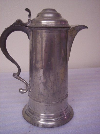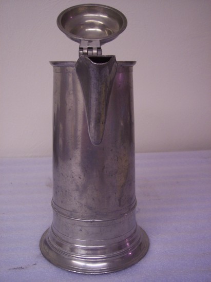 Double C handle with bud terminal, reeded base, tall body - spout, double domed top with thumb piece