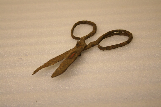 Iron shears, badly pitted and rusted