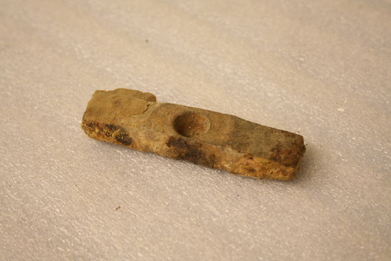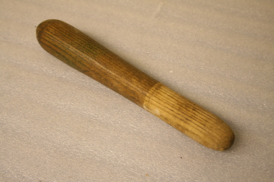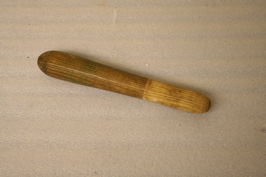 A,B: mill stones - smaller one fits inside the larger one C: wooden peg for grinding pigment in stone