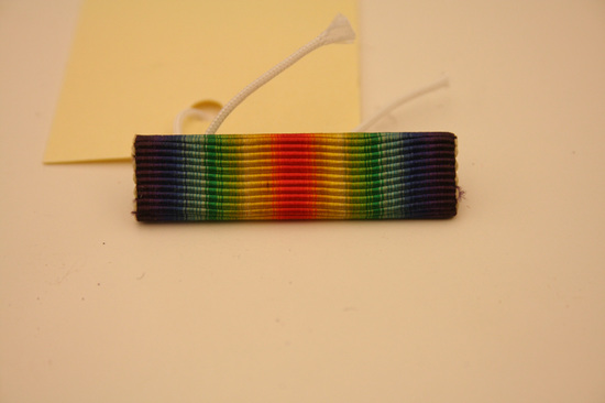 This bar pin, known as the WWI Victory Medal, is a decoration of the United States military that was first created in 1919. The medal was awarded to any member of the U.S. military who had served in the armed forces for any military service between April 6, 1917 and November 11, 1918; for service in European Russia between November 12, 1918 and August 5, 1919; and for service with the American Expeditionary Force Siberia between November 23, 1918 and April 1, 1920. The pins were awarded retroactively by mail after the close of the war. The were first awarded in 1921.