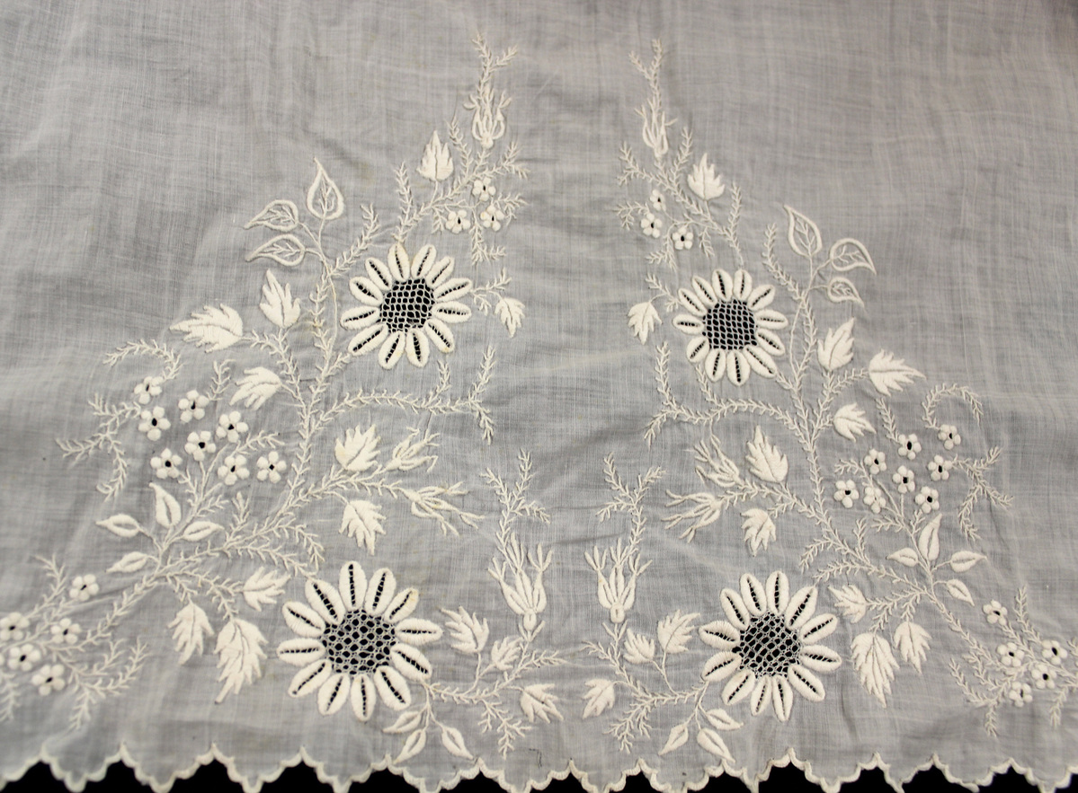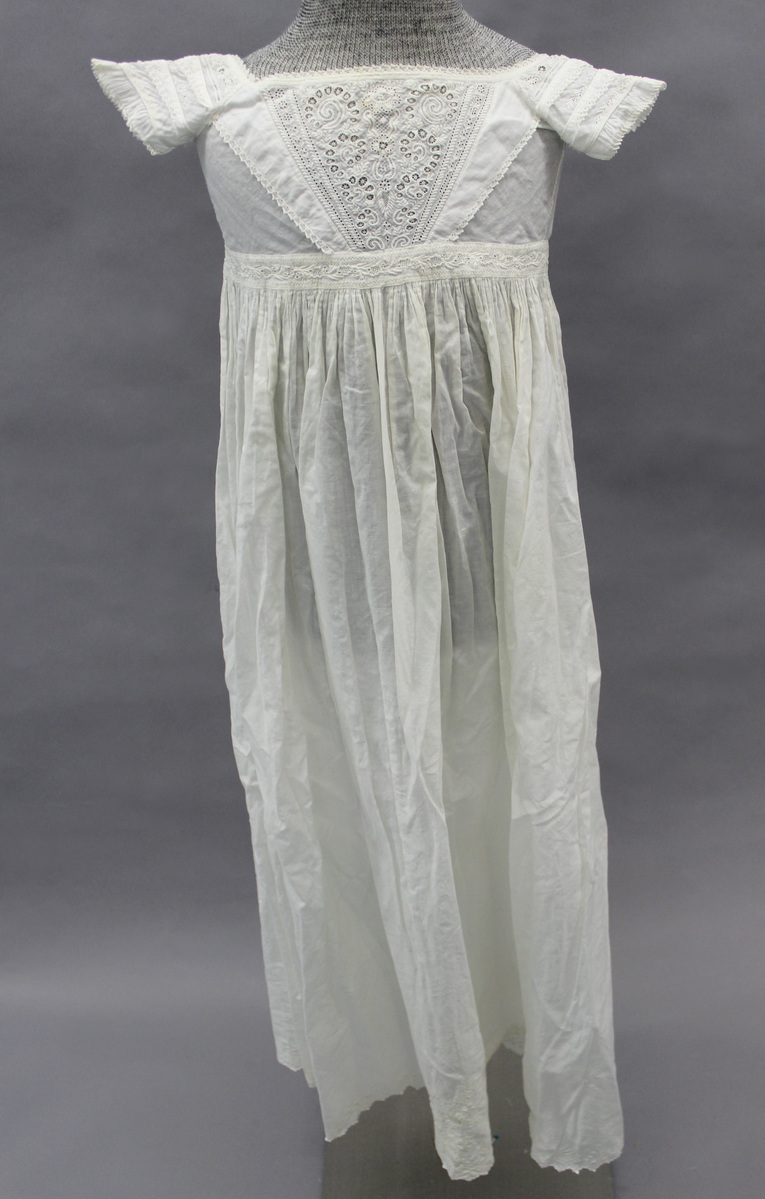 Outstanding example of Ayrshire white work embroidery and needle fillings; possible used as a christening dress