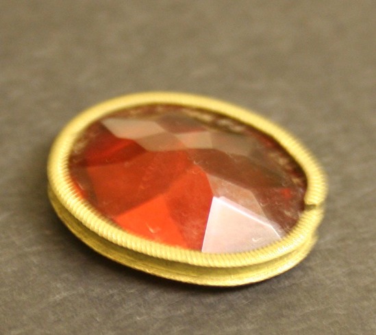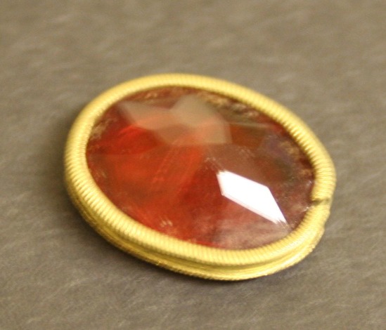 Red cut glass stone in brass oval shaped gilt frame