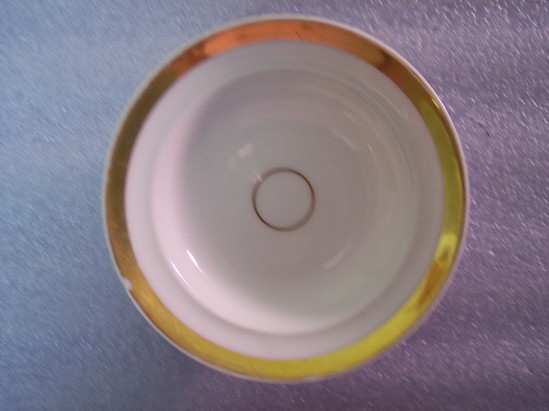 Small, round white plate with one thin, small gilt circle at its center.